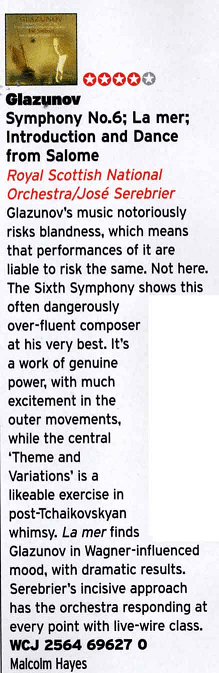 This was a performance that gripped the attention. Serebrier's combining of passionate sweep and symphonic integrity was ideal